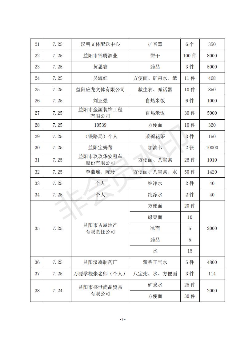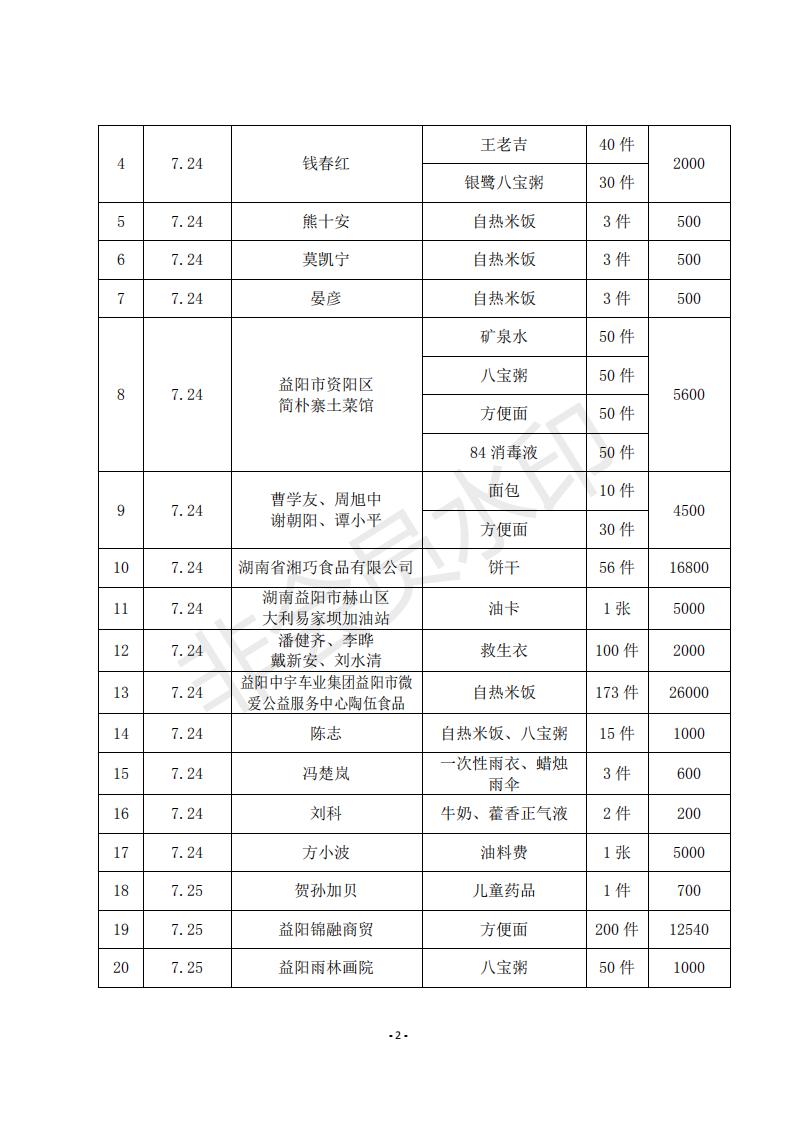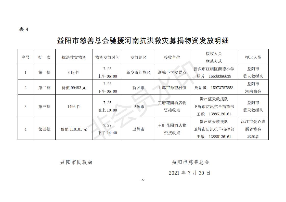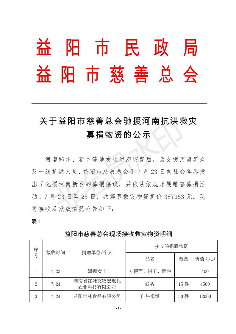 关于益阳市慈善总会驰援河南抗洪救灾 募捐物资的公示(1)