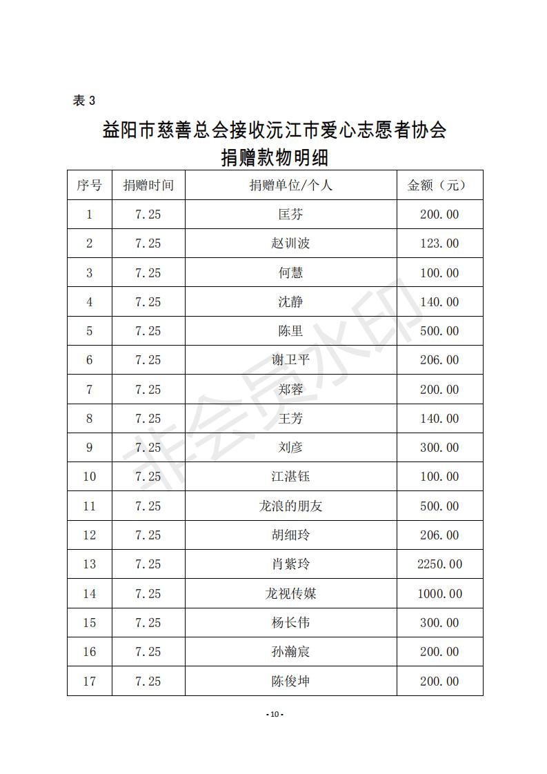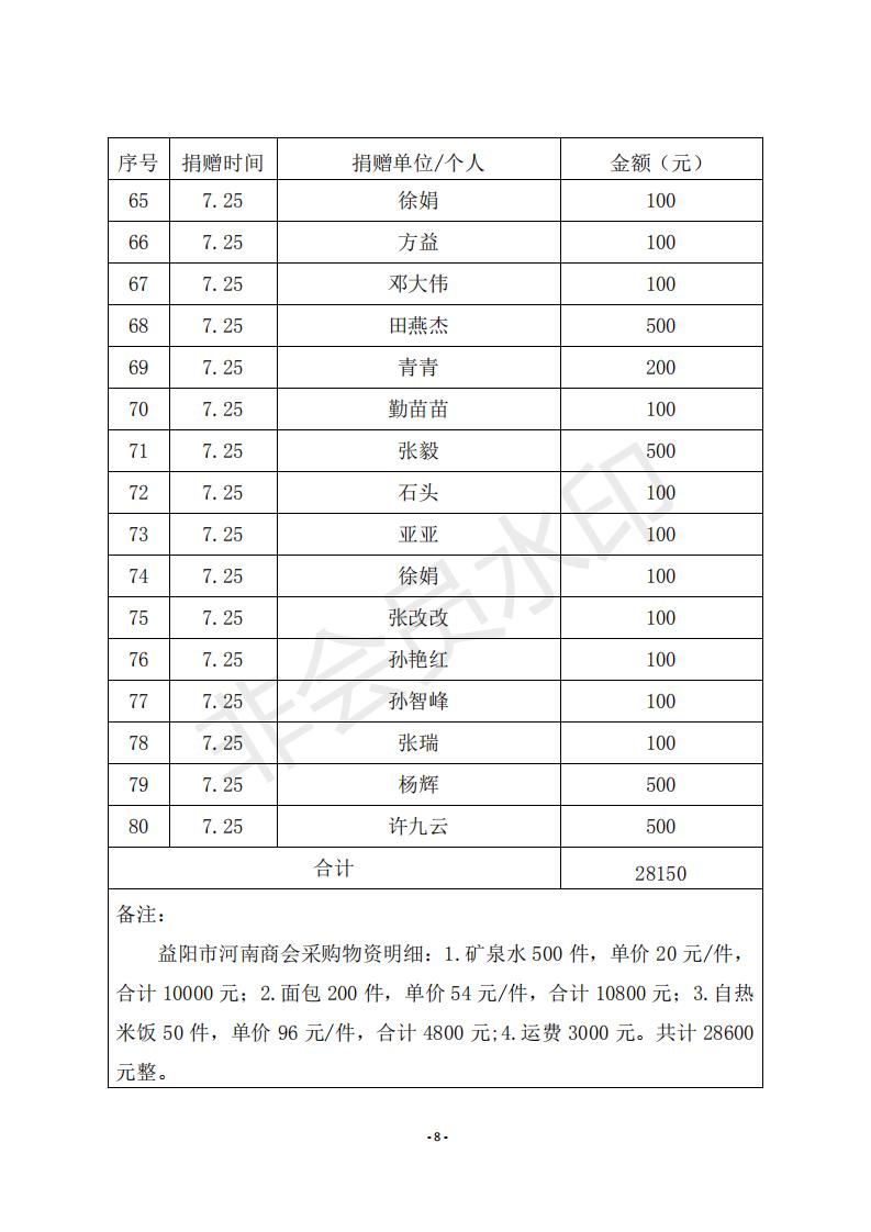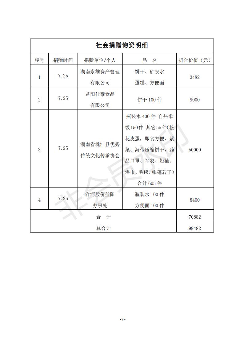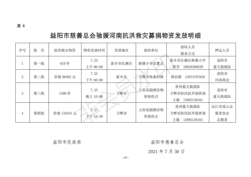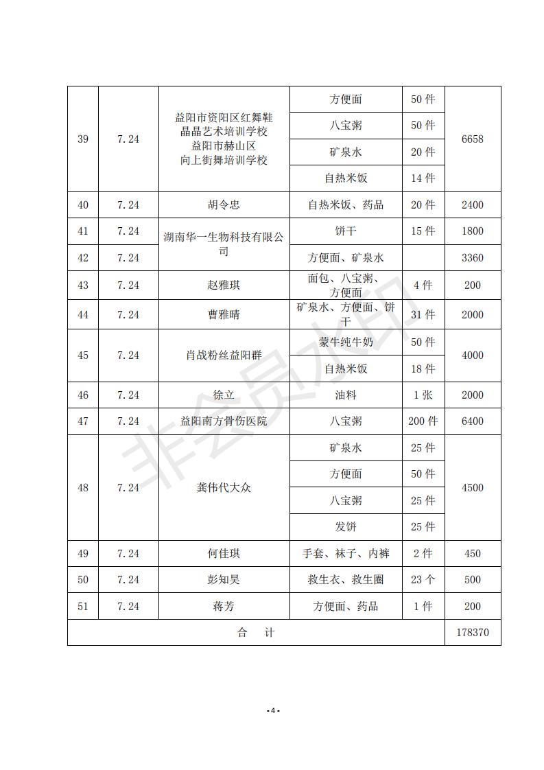 关于益阳市慈善总会驰援河南抗洪救灾 募捐物资的公示(1)