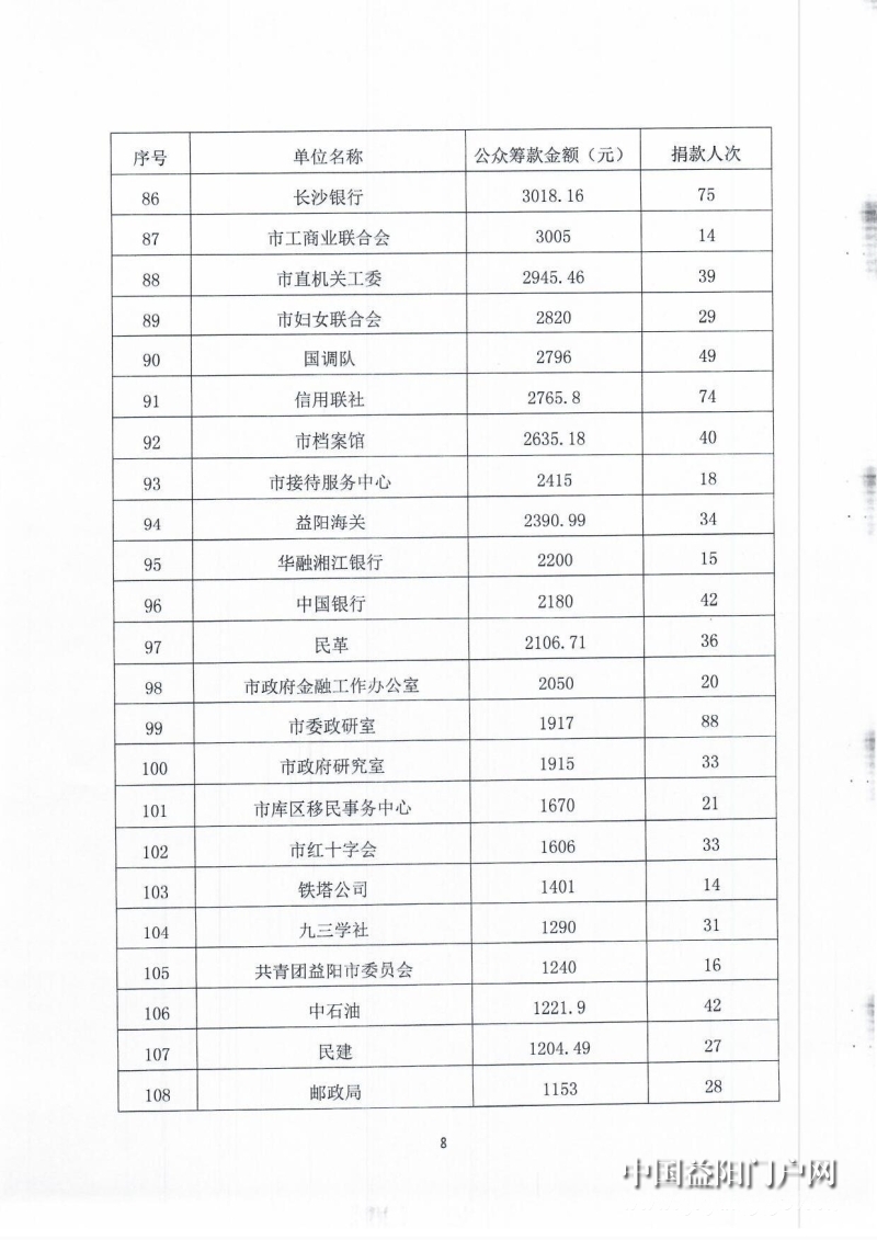 截止2020年9月8日下午4点,全市公众筹款金额8113651.33元,基础配捐金额242016.78元,非限定性配捐金额540000元。全市总筹款金额为8895668.11元。