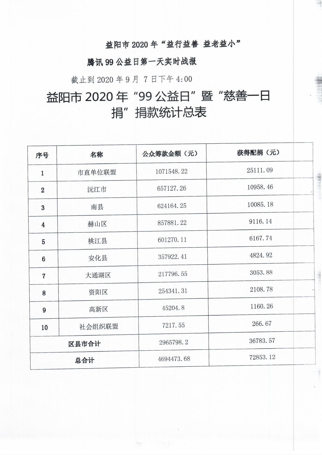 益阳市2020年“益行益善 益老益小”腾讯99公益日第一天实时战报
