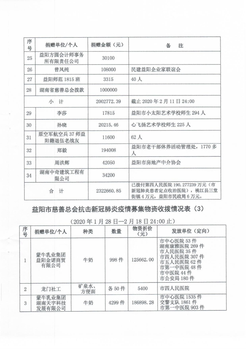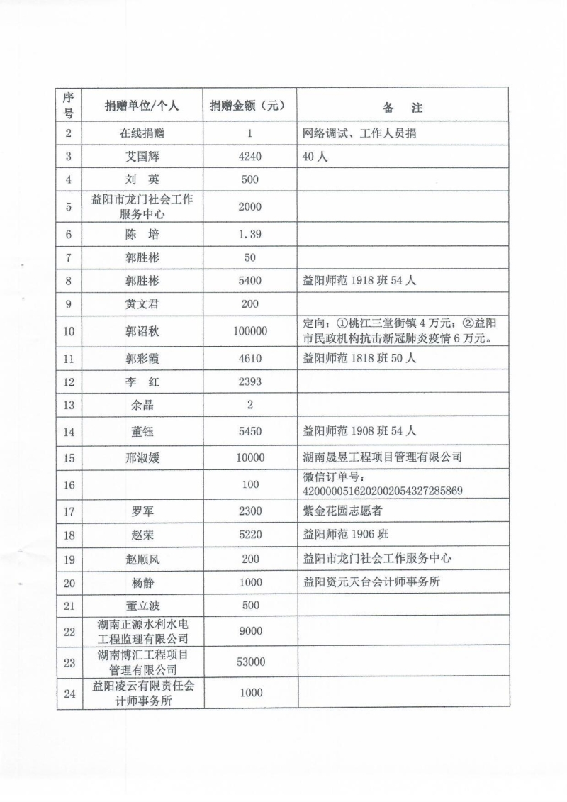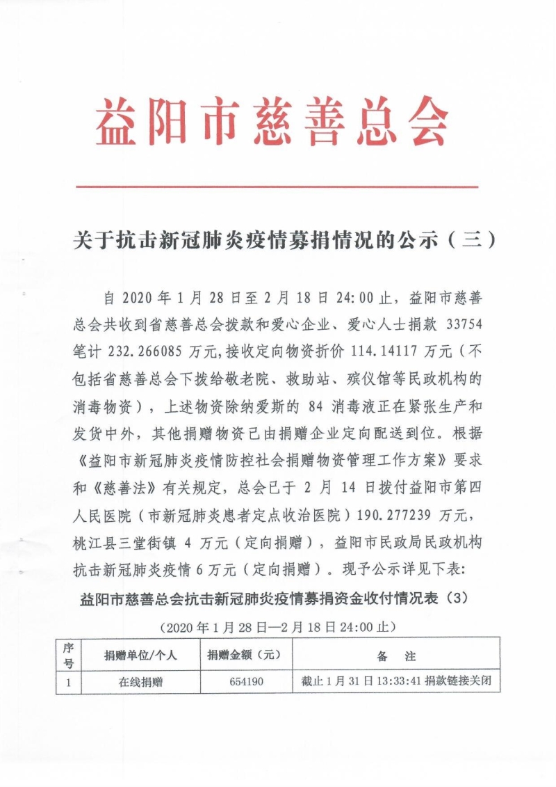 关于抗击新冠肺炎疫情募捐情况的公示(三)