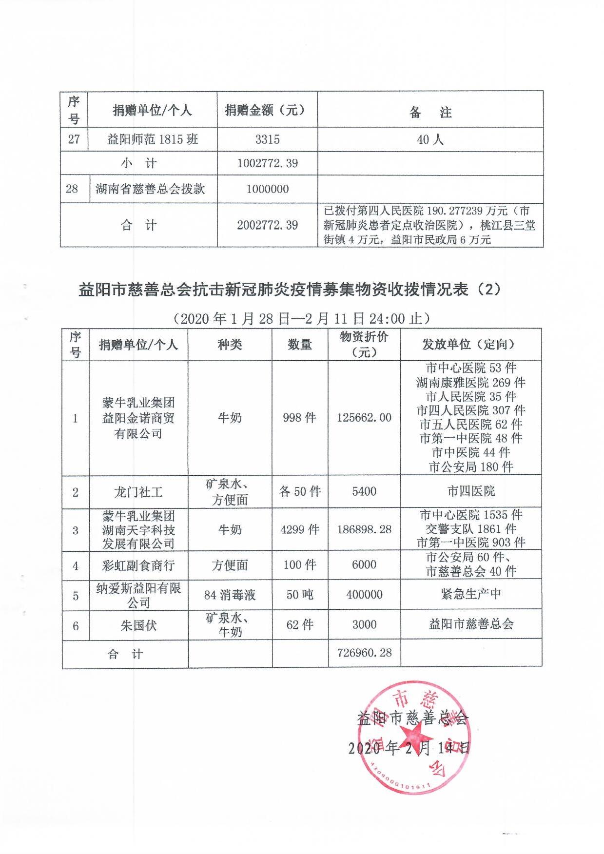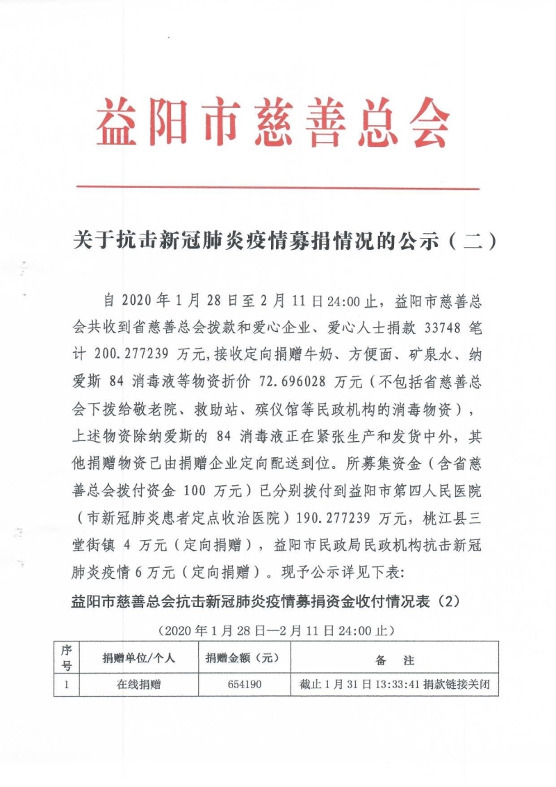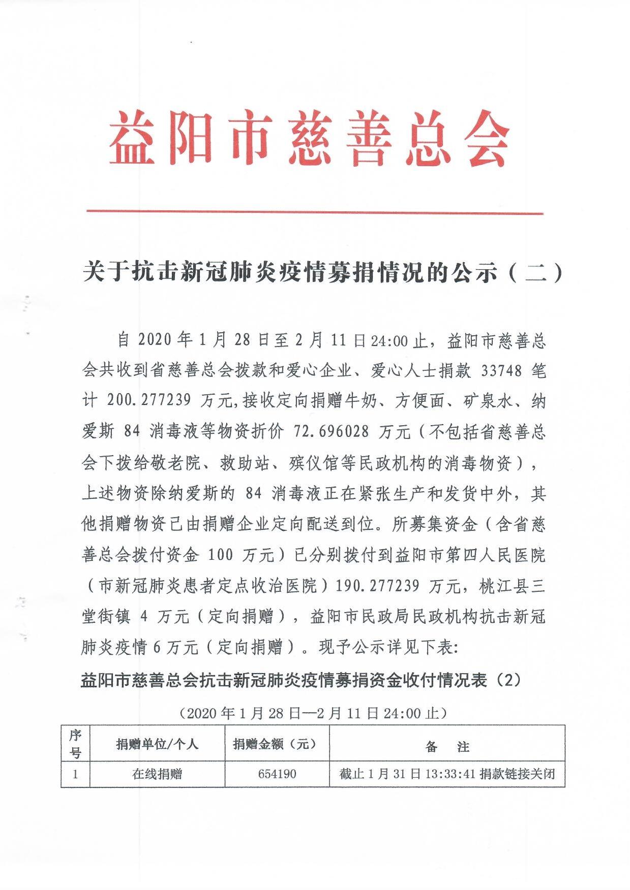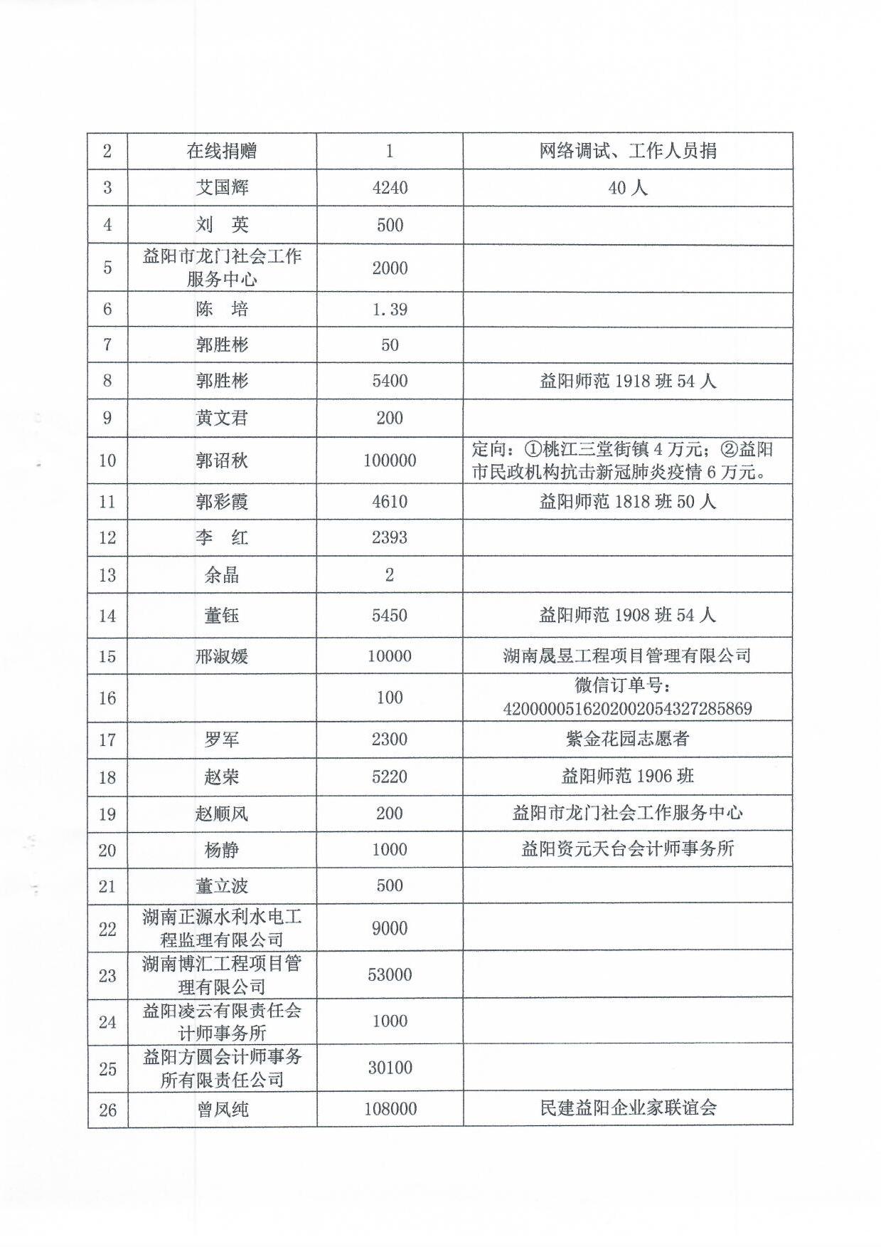 关于抗击新冠肺炎疫情募捐情况的公示(二)