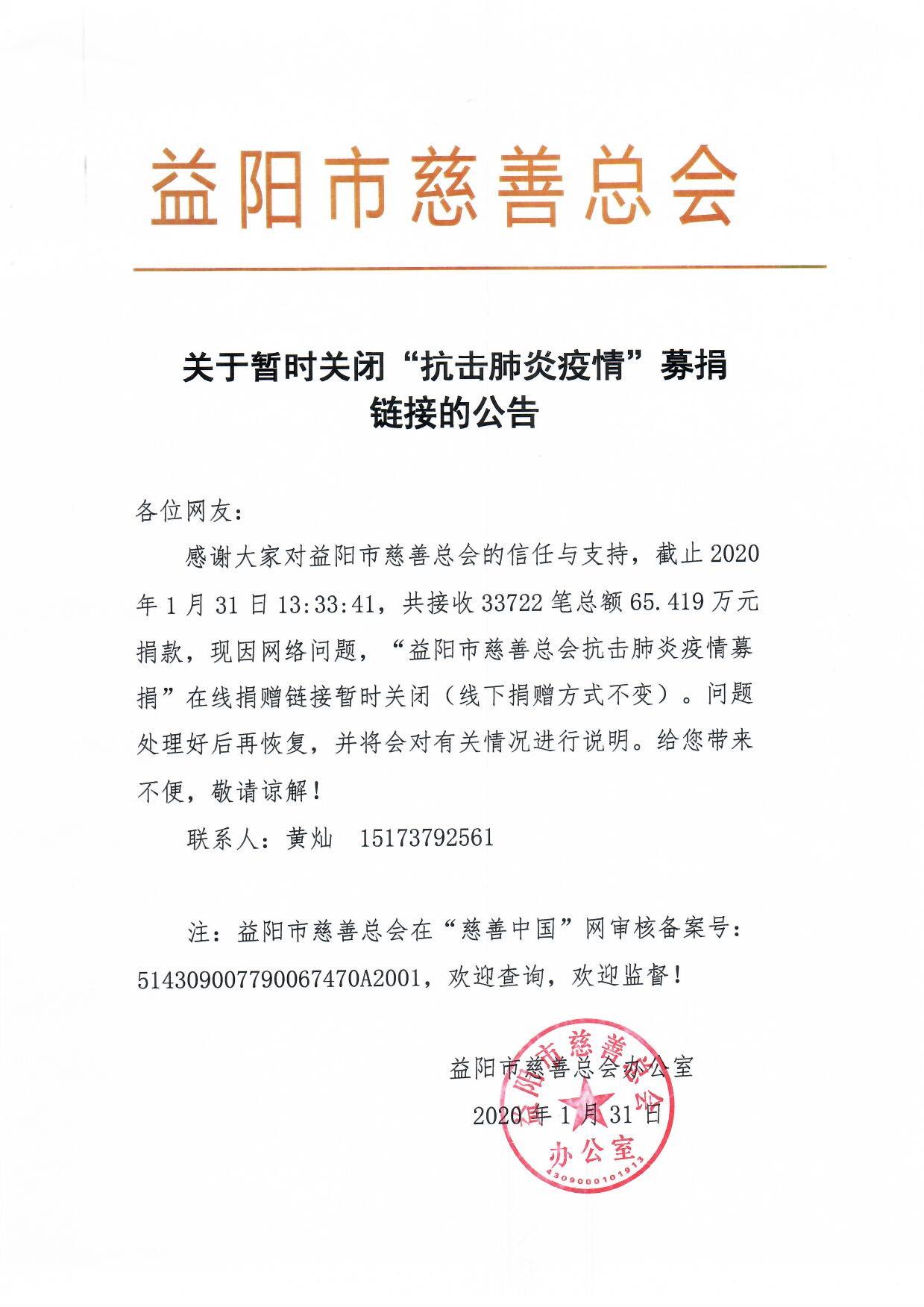 关于暂时关闭“抗击肺炎疫情”募捐链接的公告