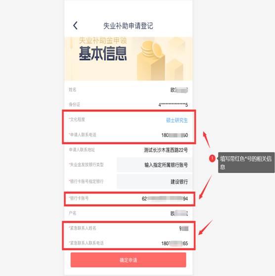 【步骤四】点击“立即申请”,填入个人基本信息后,点击“确认申请”,完成失业补助金的网上申领操作。