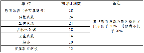 指标分配重点向科技创新、重点产业和基层一线专业技术人才倾斜,原则上学校、医院、科研院所等事业单位领导班子成员不参与评选。