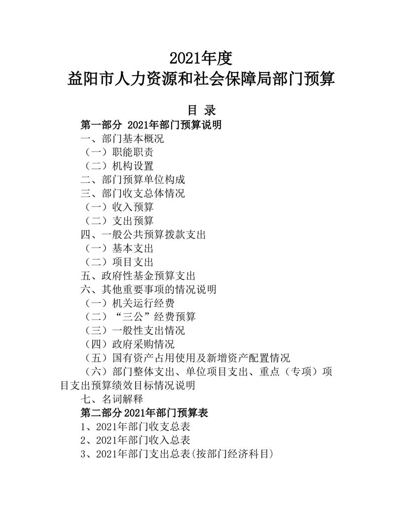 益阳市人力资源和社会保障局2021年度部门预算公开