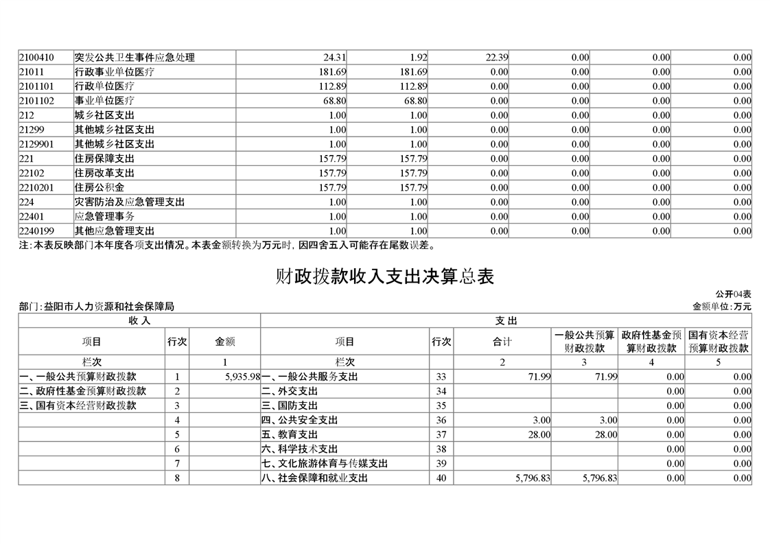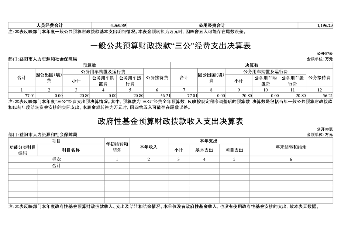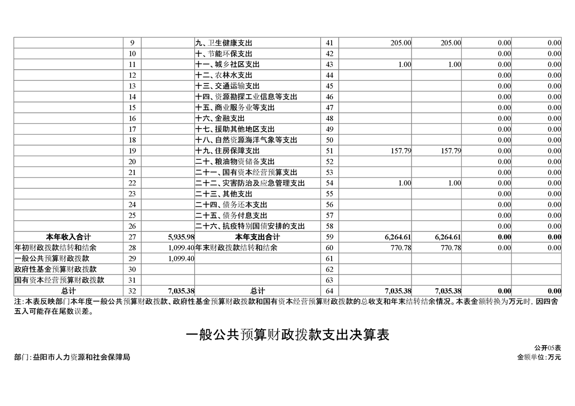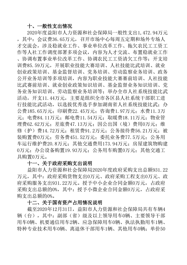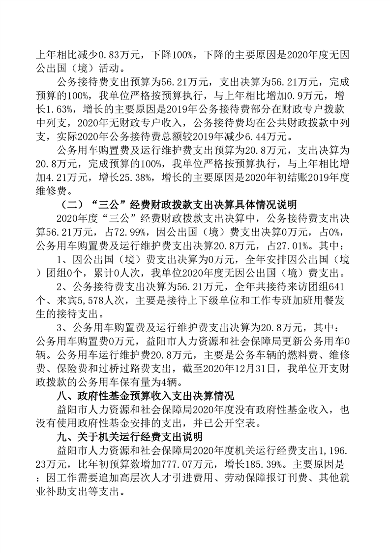 益阳市人力资源和社会保障局2020年度部门决算公开