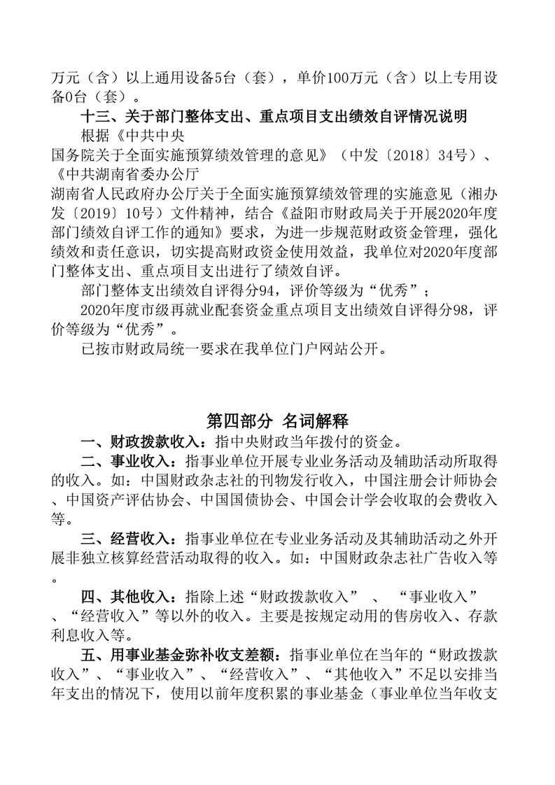 益阳市人社局2020年整体支出绩效自评报告.doc