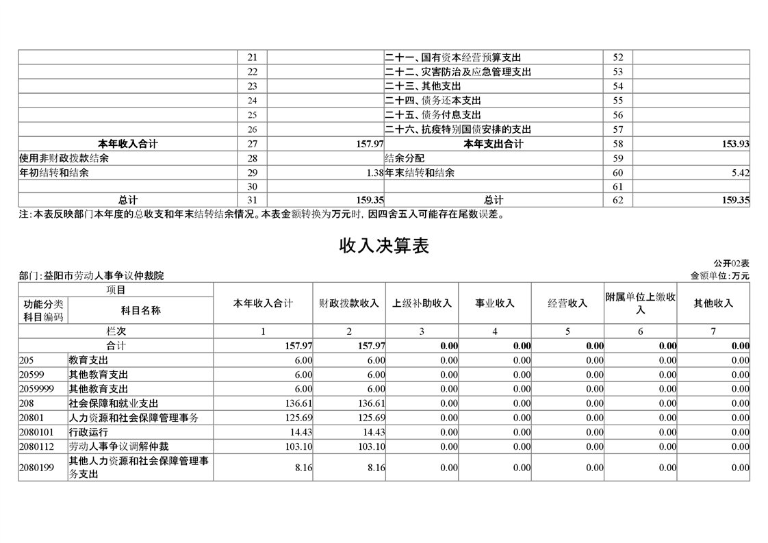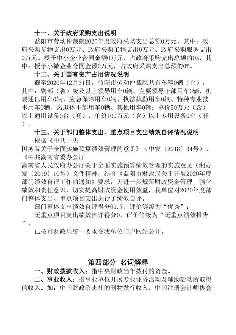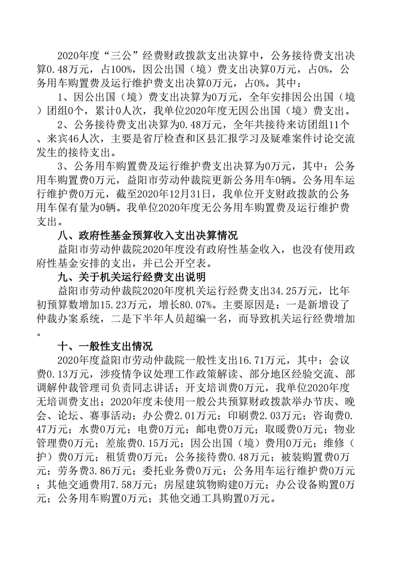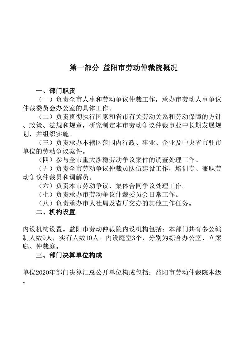 益阳市劳动人事争议仲裁院 2020年度部门决算公开