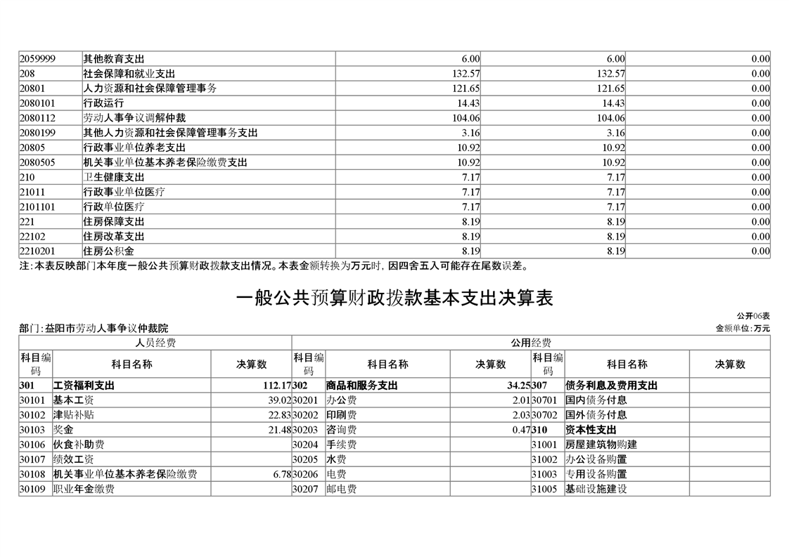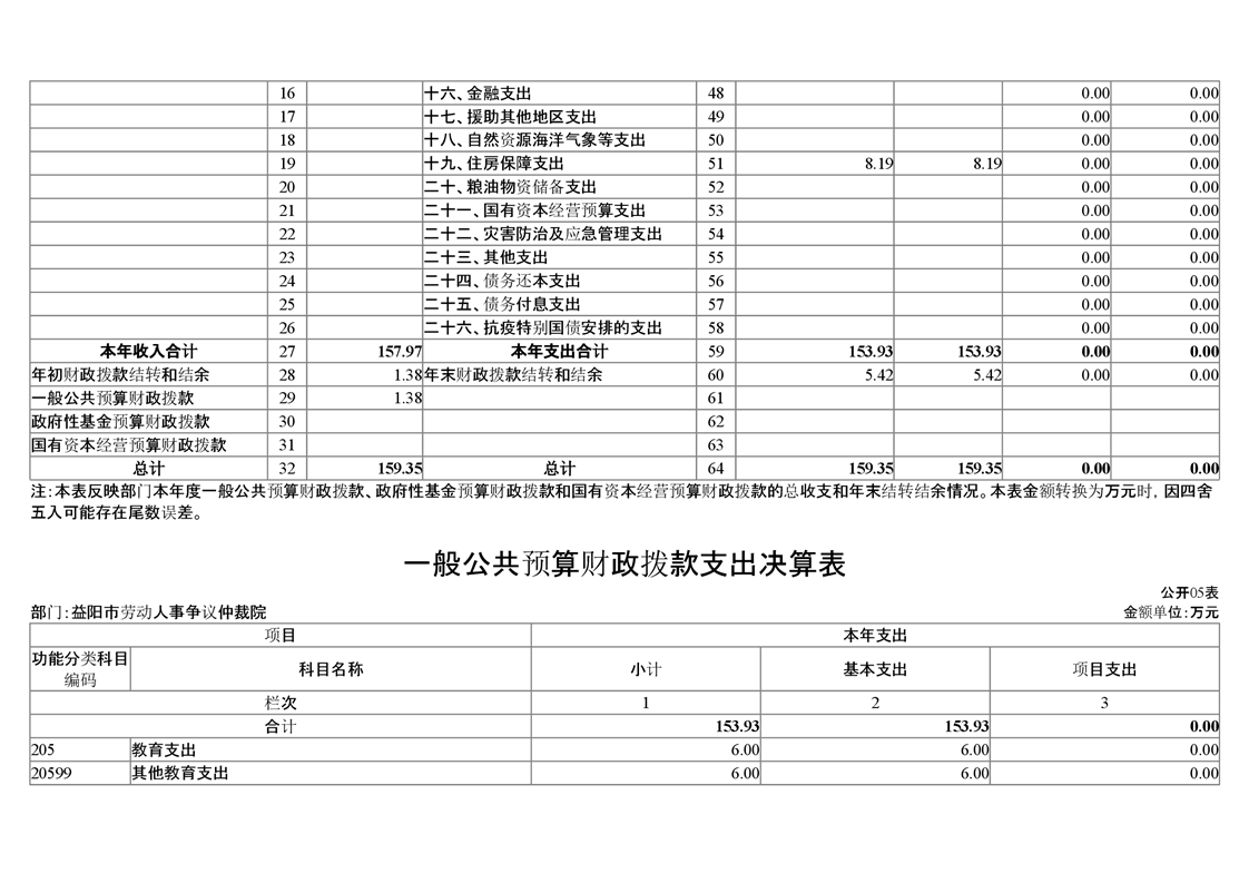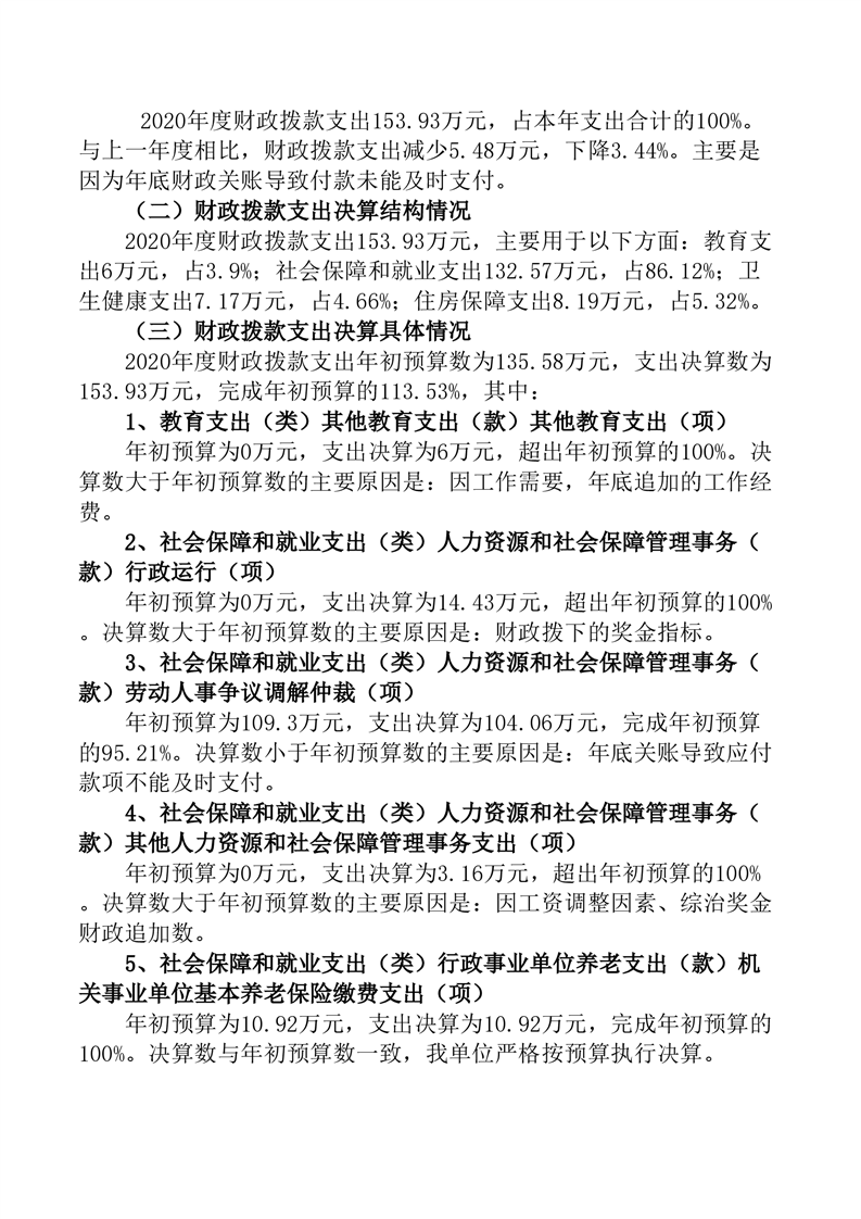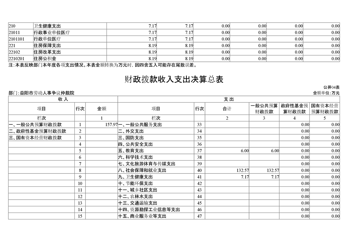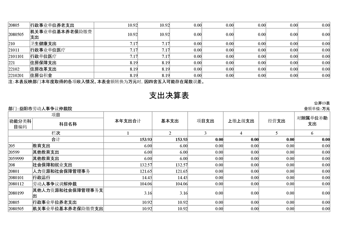 益阳市劳动人事争议仲裁院 2020年度部门决算公开