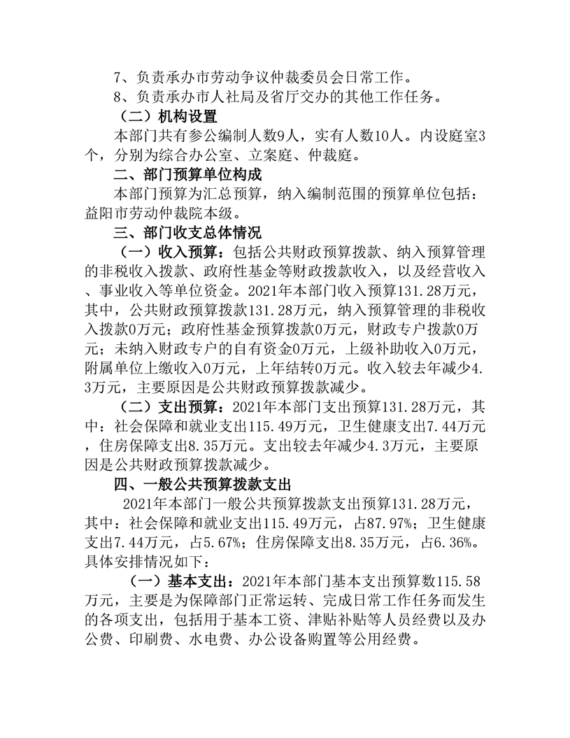 益阳市劳动人事争议仲裁院2021年度部门预算公开