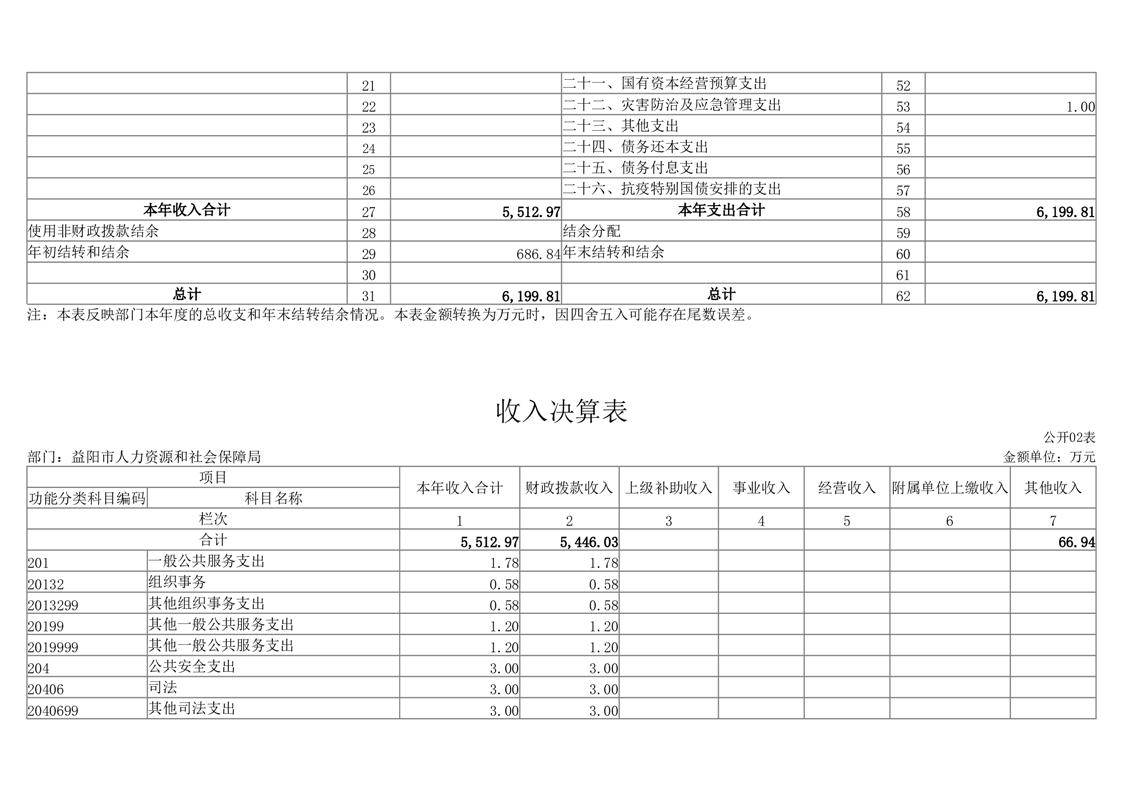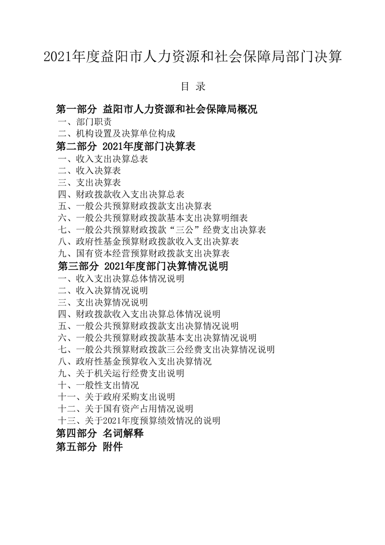 益阳市人力资源和社会保障局2021年部门决算公开说明