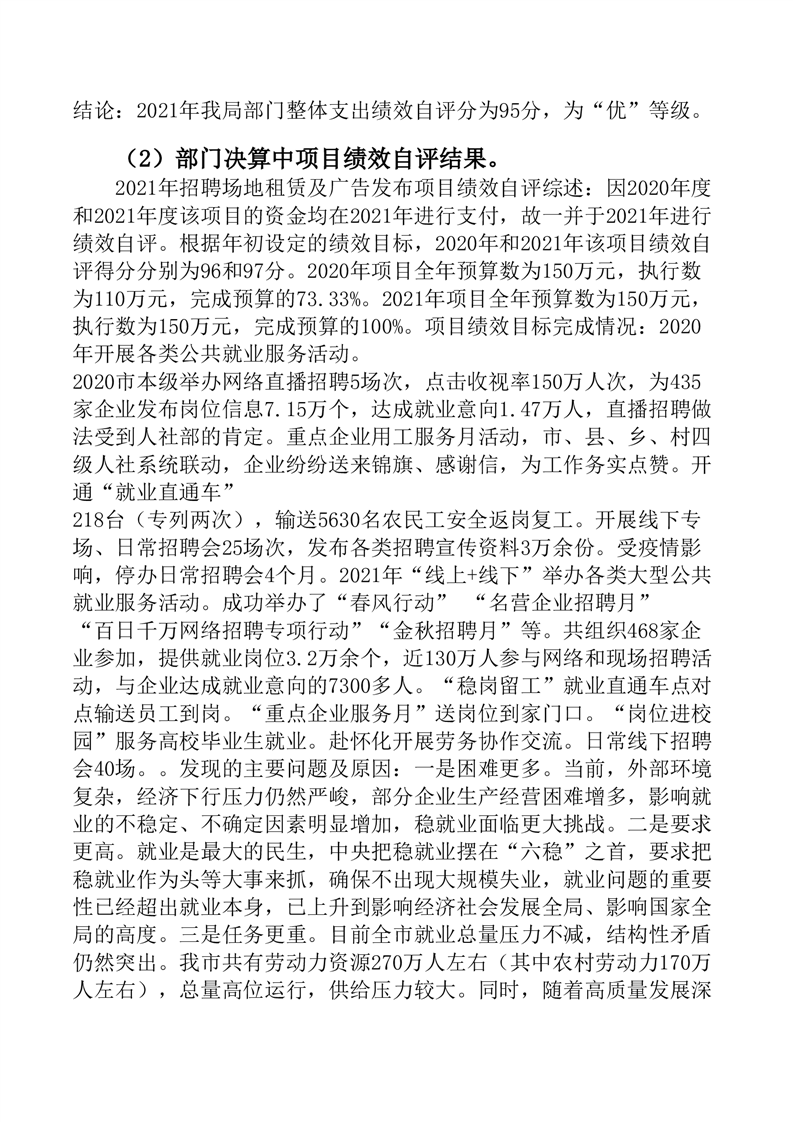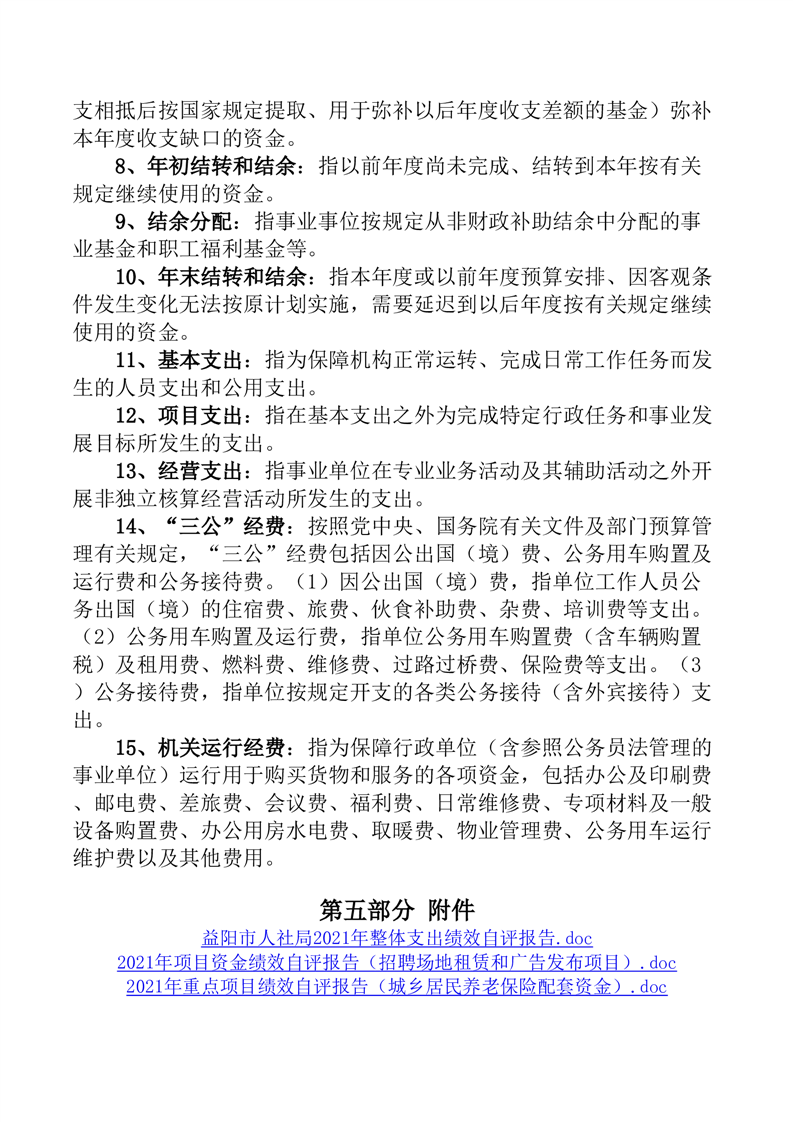 益阳市人社局2021年整体支出绩效自评报告.doc