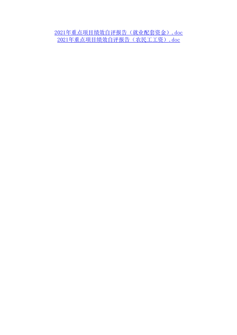 2021年重点项目绩效自评报告(就业配套资金).doc