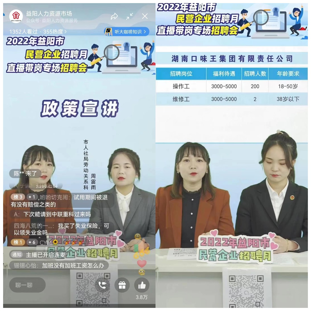 5月19日,益阳人社部门成功举办了主题为“就在民企、职向未来” 的民营企业招聘月直播带岗专场招聘会,为企业和求职者搭建互动交流平台,以更有温度的服务帮企业解困,帮求职者精准就业。