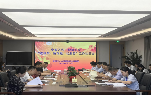 为认真落实省委省政府、市委市政府“万名干部联万企”帮扶行动,加快企业纾困和项目建设,推动全市经济持续稳定发展。6月16日,益阳市人社局组织召开“万名干部联万企,送政策、解难题、优服务行动”动员会,25名联企帮扶干部参加,市人社局副局长张建威同志主持。