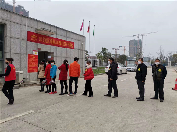 2月26日,湖南口味王集团沧水铺基地迎来了疫情防控期间赫山区第一场春季复工复产专场招聘会。此次复工复产专场招聘会为期9天,为确保疫情防控期间招聘安全,招聘会按乡镇(街道)分批组织实施,以村为单位,实行专车接送,专人带队入场。每个求职者都必须经过安全检测(量体温和消毒),分发序号、待聘室临时报名处审核证件(再次测量体温)、面试,观看培训视频,填写《员工入职申请表》、现场体检四道程序,对合格者发放《初步意向录取单》。