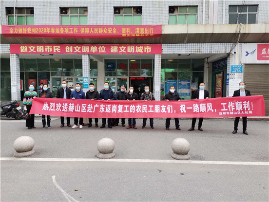 3月13日早上,益阳赫山汽车东站大门口聚集了这样一群特殊人员,他们是来自沧水铺镇和欧江岔镇外出务工人员。为做好外出务工人员的服务工作,赫山区就业服务中心工作人员早早就带上准备好的车票、方便面、矿泉水等物品来到车站,准备为外出务工人员送行。