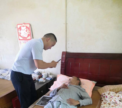 2023年6月27日下午,资阳区社会保险服务中心工作人员郑明林、曾世雄前往资阳区新桥河镇廖河村为龚爷爷上门办理待遇资格认证服务。龚爷爷身患重病、行动不便,身边的保姆与龚爷爷也都不会使用智能手机。龚爷爷躺在床上,张张嘴、摇摇头、眨眨眼,数十秒待遇资格认证就成功了。龚爷爷激动地说:“谢谢你们能提供上门认证服务,解决了我待遇停发的忧虑”。
