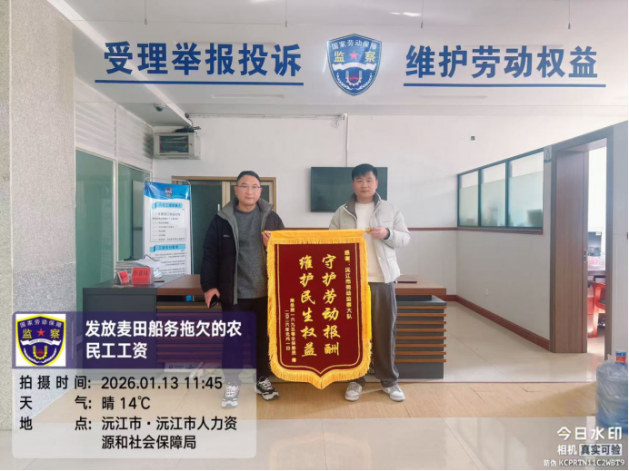 1月13日,沅江市人力资源和社会保障局协同当地法院,成功办结麦田船务有限公司拖欠农民工工资案件,44.62万元工资、2万元赔偿金已全部执行发放到位,切实维护了农民工合法权益。