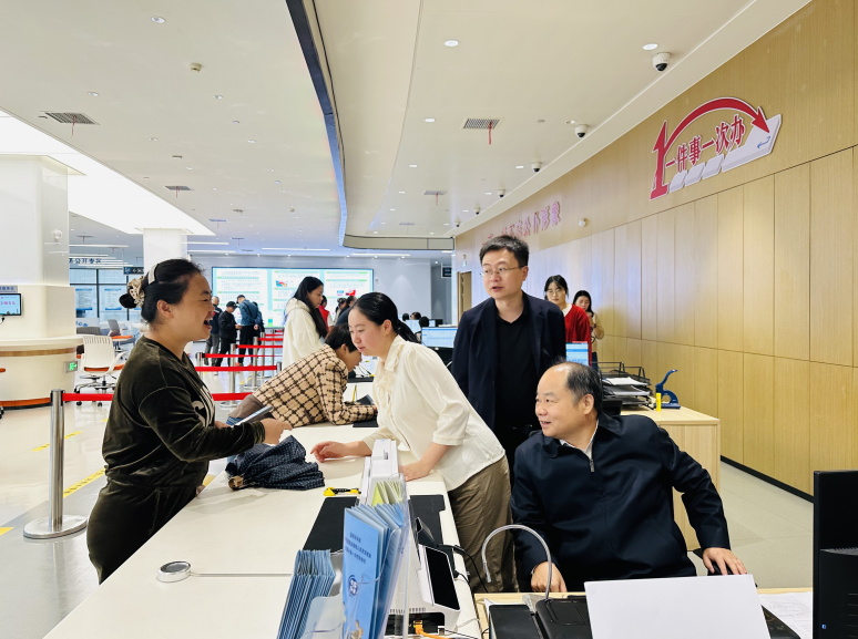 10月14日上午,市人社局党组书记、局长肖凤南深入人社政务大厅“走流程、解难题、优服务”。肖凤南通过体验办,与窗口工作人员详细交流,听取事项流程汇报,全面了解了人社各窗口业务工作,重点梳理优化“退休一件事”相关工作,并视察指导人社业务综窗办理试运行工作。