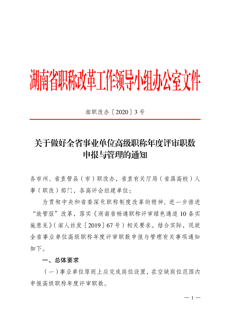 关于做好全省事业单位高级职称年度评审职数申报与管理的通知