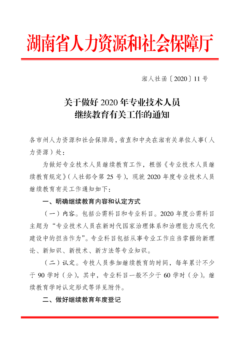 关于做好 2020 年专业技术人员继续教育有关工作的通知