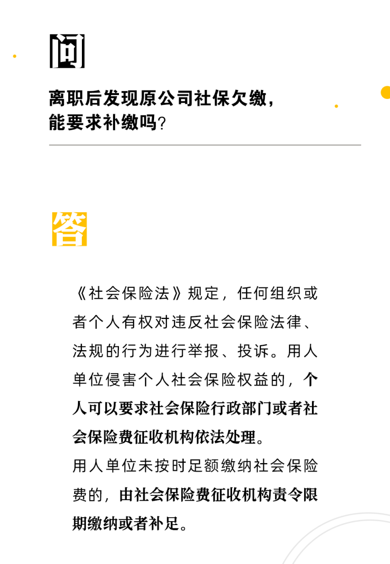【温暖社保·每周一课】离职后发现原公司社保欠缴,能要求补缴吗?