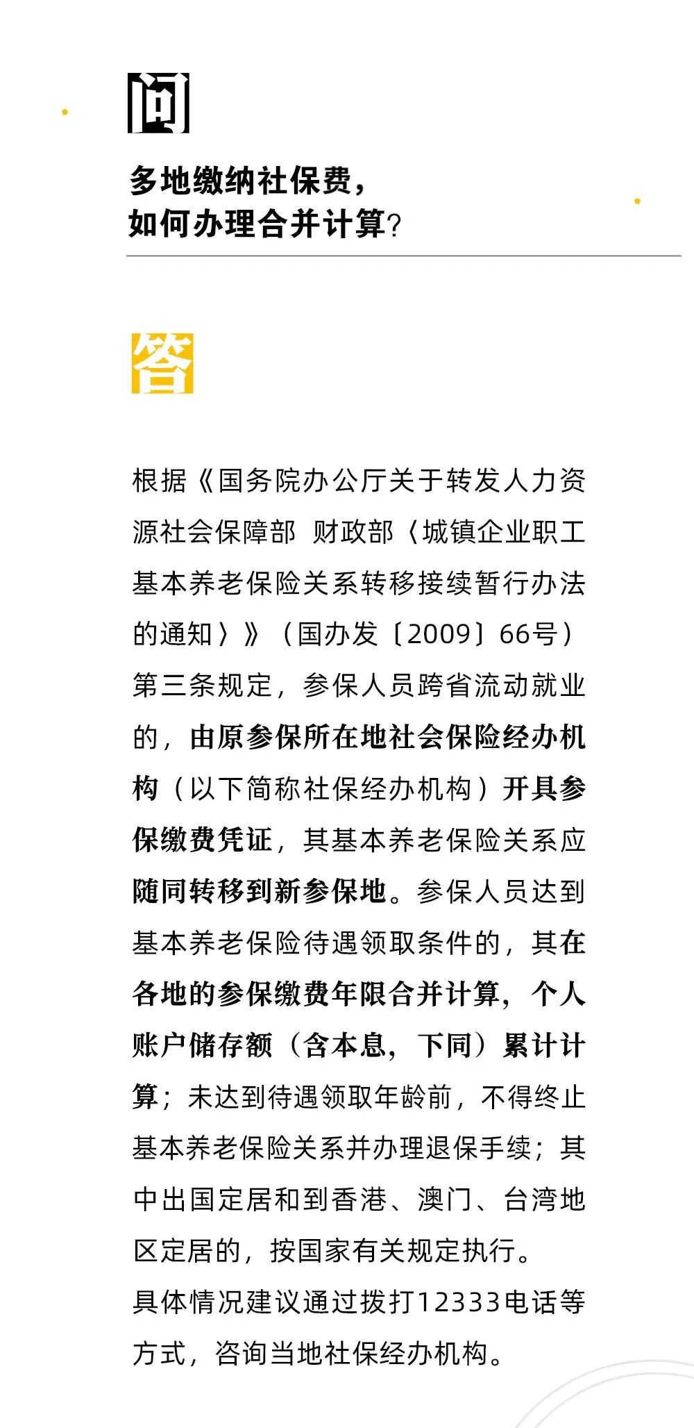 【温暖社保·每周一课】多地缴纳社保费,如何办理合并计算?