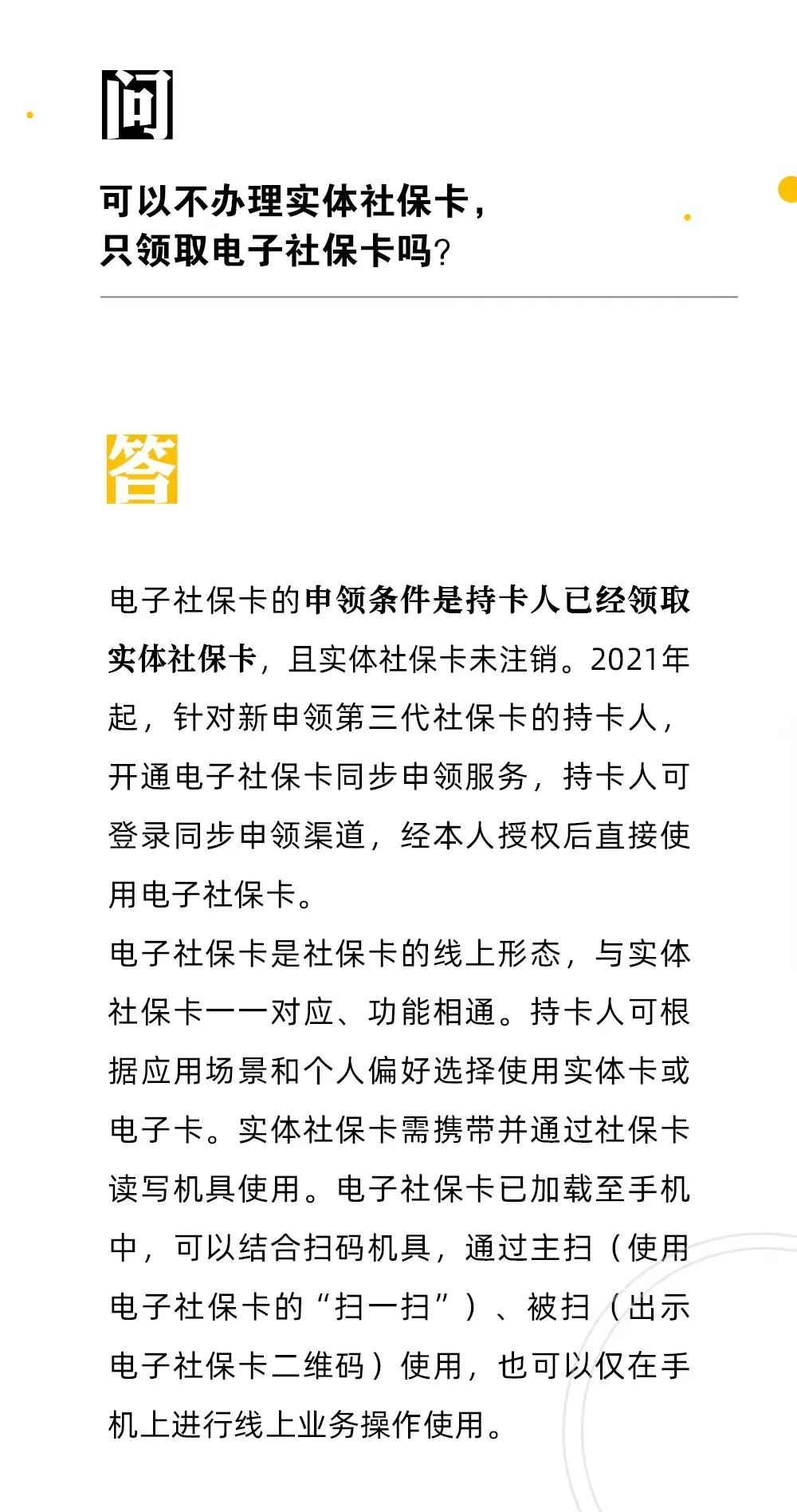 【温暖社保·每周一课】可以不办理实体社保卡,只领取电子社保卡吗?