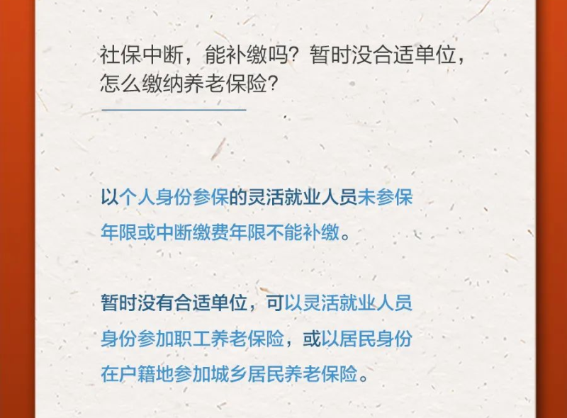 【温暖社保·每周一课】社保中断,能补缴吗?暂时没合适单位,怎么缴纳养老保险?