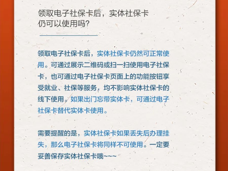 【温暖社保·每周一课】领取电子社保卡后,实体社保卡仍可以使用吗?