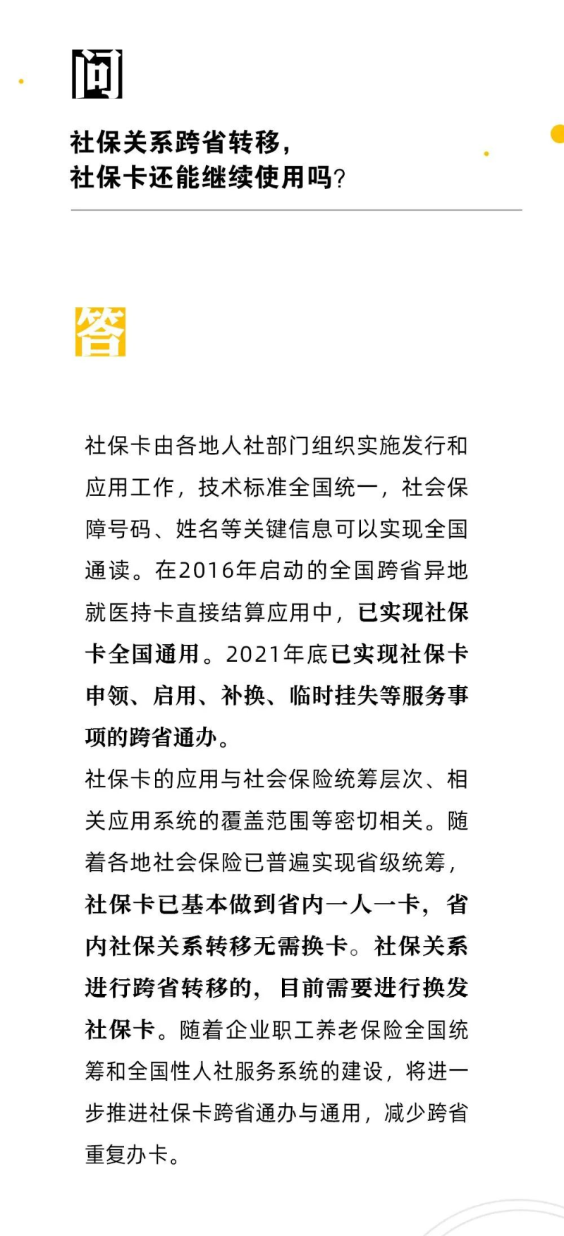 【温暖社保·每周一课】社保关系跨省转移,社保卡还能继续使用吗?