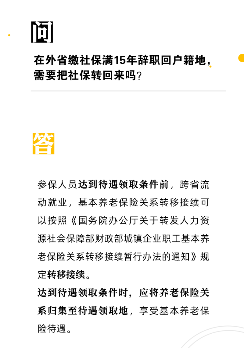 【温暖社保·每周一课】在外省缴社保满15年辞职回户籍地,需要把社保转回来吗?