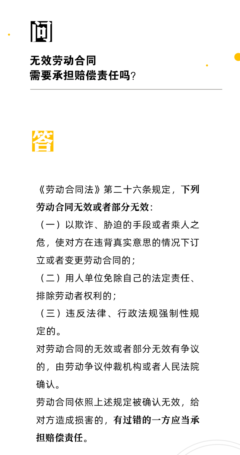 【温暖社保·每周一课】无效劳动合同需要承担赔偿责任吗?
