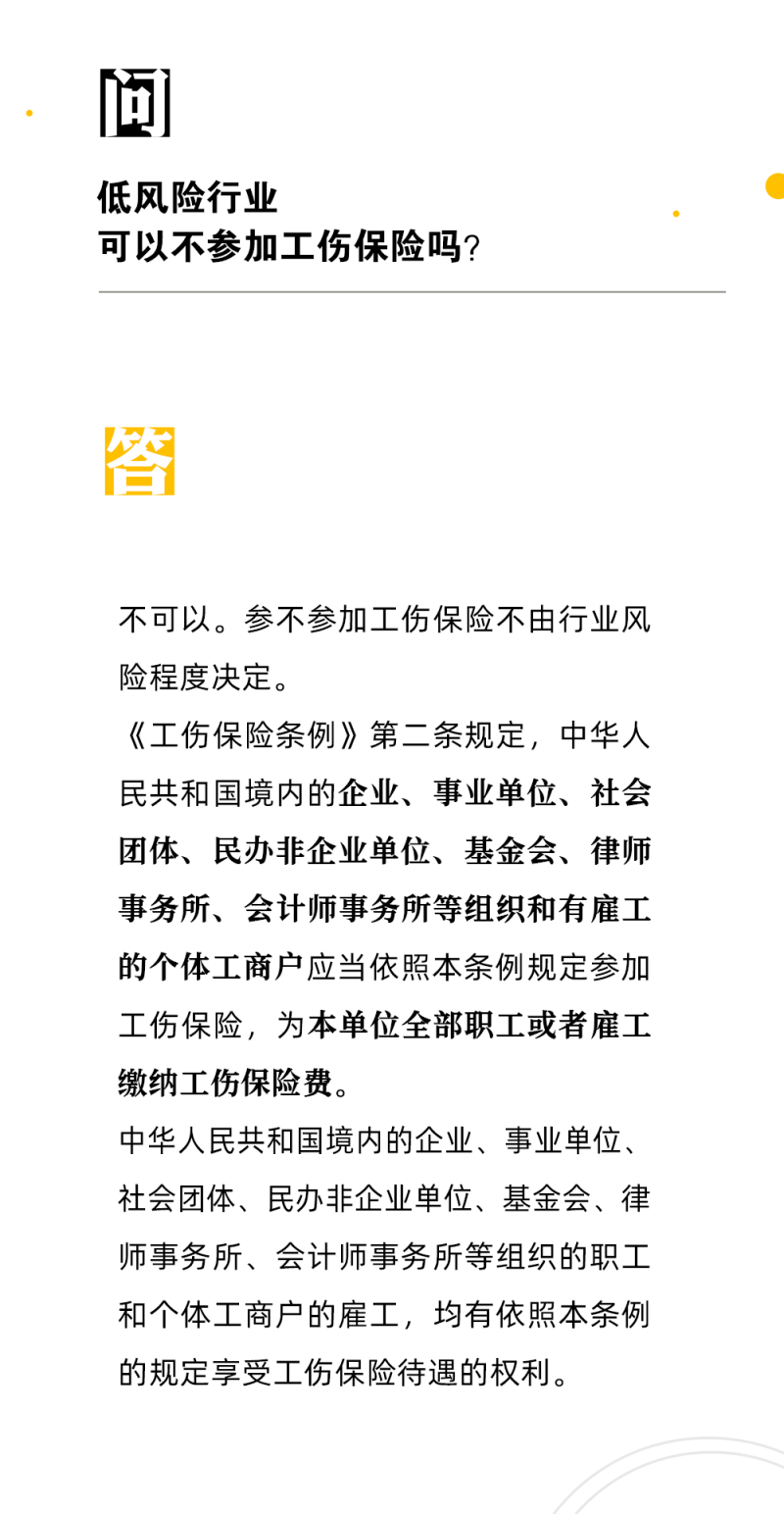 【温暖社保·每周一课】低风险行业可以不参加工伤保险吗?