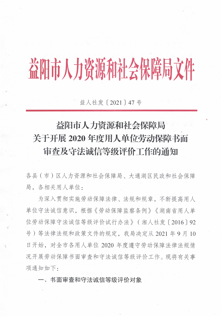 关于开展2020年度用人单位劳动保障书面审查及守法诚信等级评价工作的通知