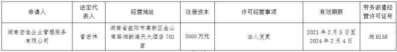 经审核,以下单位申报经营劳务派遣业务的变更申请,符合国家及本省有关法律法规及政策规定,根据《行政许可法》第三十八条第一款以及《劳务派遣行政许可实施办法》第十三条第一款的规定,本机关决定准予行政许可。