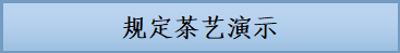 (2)选手抽签确定组别和茶样后,对所冲泡的茶样,用标准的感官审评器具,按GB/T 23776-2018进行感官审评,正确判断茶样的外形、汤色、香气、滋味、叶底的优点与缺点,并书写于试卷上,时间15分钟。再根据分组进行冲泡演示,每组人数6-8人,具体根据参赛选手实际人数,由裁判长确定;选手备具、备水时间5分钟,演示时间为 6~10 分钟。演示过程不需要解说。