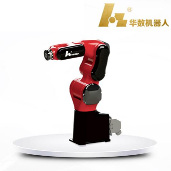 工业机器人系统采用华数HSR-JR603-C30系统,包含了机器人本体,机器人控制柜、示教器、机器人连接电缆。HSR-JR603型工业机器人臂展571.5mm,负载能力为3KG,末端最大运行速度为3m/s。
