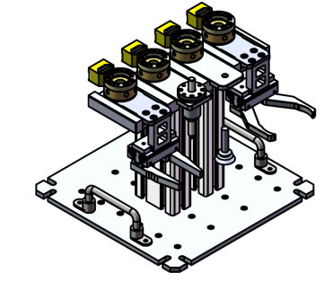 装配模块为机器人组装零部件提供准确的操作工位,主要由伸缩气缸和工件定位夹紧块组成。