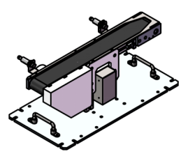 皮带输送模块主要由皮带线输送机、工件上料检测传感器、工件到位检测传感器组成。皮带线输送机采用0-3000rpm直流电机驱动,运动减速比为1:50,皮带线可通过PLC控制模拟量进行调速,可控制启停。