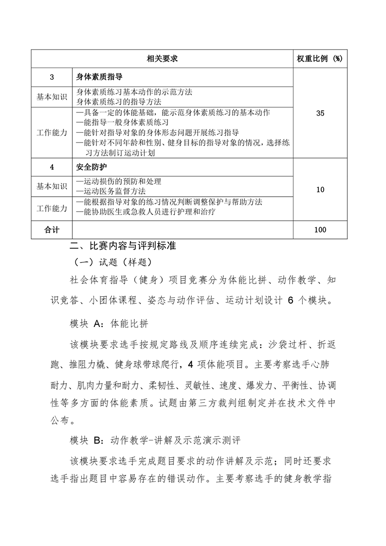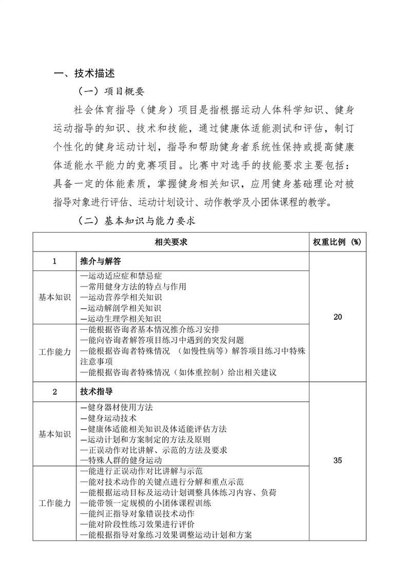 益阳市第一届职业技能大赛社会体育指导(健身)项目技术文件