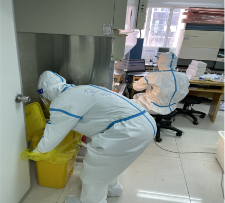 早上5点多到达暂住的隔离酒店,我和队友们吃过早餐稍作休息,就满打起精神等待工作调配。张家界市疾控的检测任务重,急缺人手,我被安排到了市疾控核酸检测实验室,按照核酸检测流水线操作程序,负责样品拆包装、编号排序、扫码准备检测的工作。看着忙碌的实验人员,穿戴着厚重的防护设施,以及透过面屏的满头大汗,更为坚定了我一定能战胜疫情的信心。熟悉完工作环境,我很快就投入到工作岗位,严格按照操作程序将样品放进温箱灭活病毒。不到半小时,断续地来了三波样本。灭活后,我挺直腰板,手脚麻利的开始拆开包装,摆上试管架,书写编号,扫码进电脑。尽管一切都是重复再重复,但一定要注意扫码是否到位,容不得半点疏忽,不然重新编排对检测进度影响很大。从上午直到将近下午两点,我与合作的小伙伴完成了近1000个样本的编配,不算很快,但也是迅速完成了任务。小伙伴告诉我,他们从7月28号就开始了漫长的加班,每天都没日没夜的进行核酸检测,但是他们都毫无怨言,他们也非常感谢这次各兄弟市州的无私援助。
