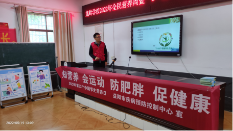 为贯彻落实《湖南省人民政府关于健康湖南行动的实施意见》《湖南省国民营养计划2030实施方案》,深入推进学生营养改善行动,根据国家卫生健康委食品司《关于开展2022年全民营养周暨“5·20”中国学生营养日主题宣传活动的通知》要求,益阳市疾控中心组织开展主题为“知营养 会运动 防肥胖 促健康”的中国学生营养日主题宣传活动。
