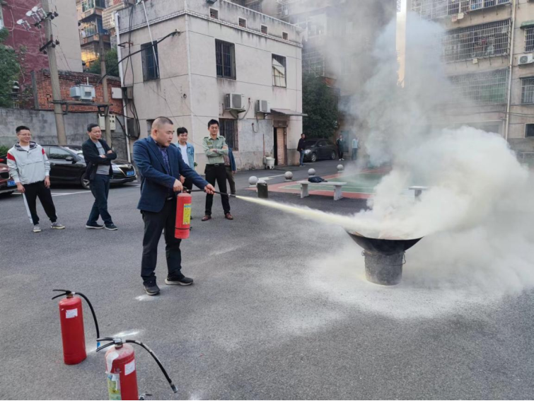 曾教官通过播放近几年发生的火灾视频(长沙电信大厦事故、电动车充电爆炸起火、家用电器忘拔后果等),讲解如何扑灭不同类型的火灾等方式,对如何预防火灾发生、如何使用消防工具扑灭初级火灾、如何逃生自救三个方面进行了详细讲解。随后,曾教官指导开展现场疏散演练和实操使用灭火器。