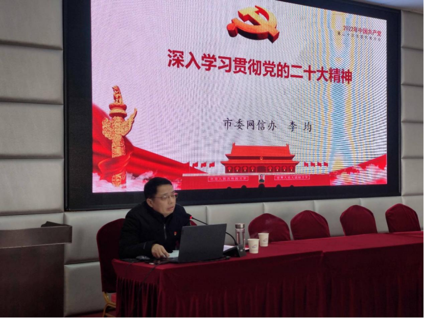 为深入学习贯彻党的二十大精神,2月24日,市疾控中心举办党的二十大精神宣讲会,邀请市委宣传部部务会成员、市委网信办副主任李均作专题讲解,市疾控中心全体干职工参加会议。
