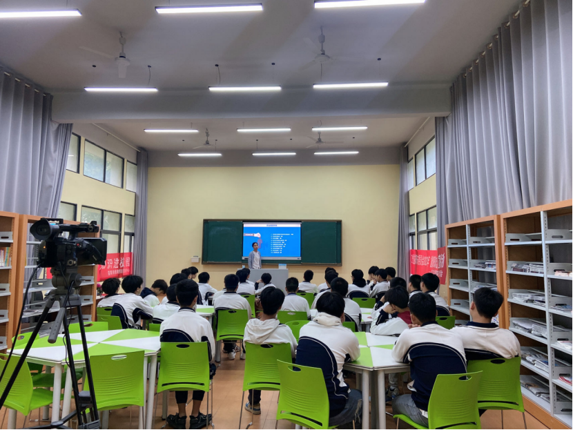 在益阳高级技工学校,市疾控中心主任医师田娇为全校学生直播培训职业病防治知识,包括什么是职业病、健康危害因素有哪些、怎么预防治疗职业病等。同时,在校内悬挂横幅、展出宣传板、摆设咨询点,给广大师生发放宣传品并接待咨询。