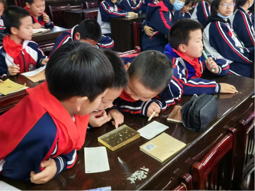 图三 学生们传看钉螺标本