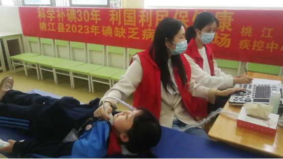 2023年5月23日上午,益阳市疾病预防控制中心与桃江县疾病预防控制中心在桃江县近桃小学开展碘缺乏病监测工作,主要是收集学生家庭盐样、检测8-10岁儿童的尿碘含量和甲状腺容积测定,这标志着我市新的一轮碘缺乏病监测工作正式启动。